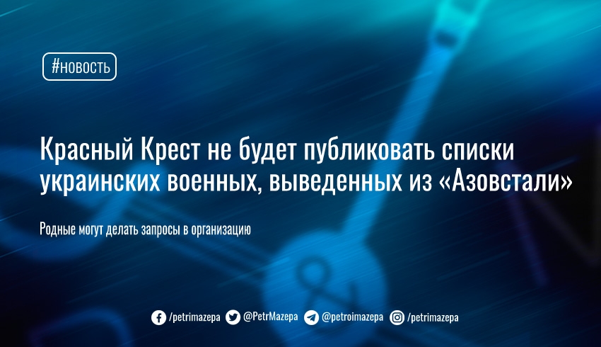 Красный Крест не будет публиковать списки украинских военных, выведенных из «Азовстали»
