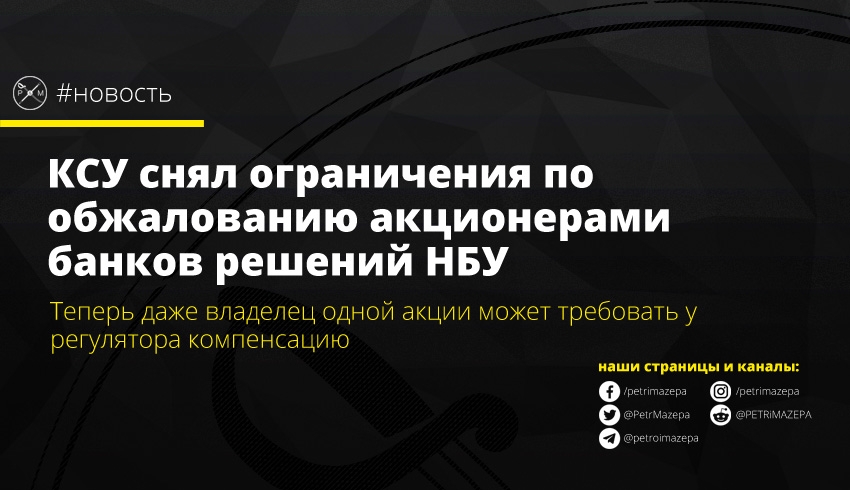 КСУ снял ограничения по обжалованию акционерами банков решений НБУ