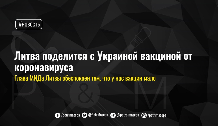 «Я выразил свое беспокойство относительно недостаточного количества вакцин от коронавируса и убедил министра: в случае возникновения излишка, мы, конечно, поделимся с Украиной», - сказал, со своей стороны, Ландсбергис.