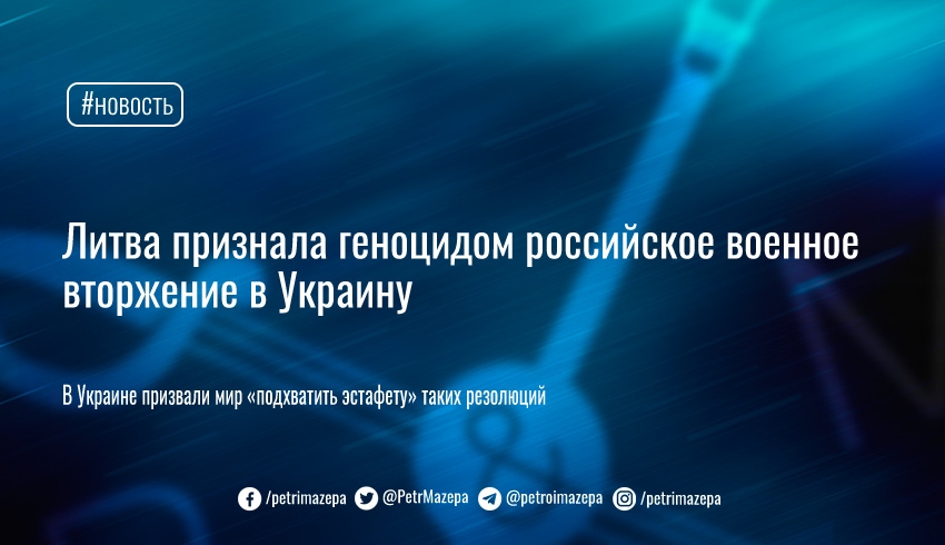 «Сейм Литовской Республики признает полномасштабную вооруженную агрессию против Украины со стороны вооруженных сил Российской Федерации и ее начавшегося в 2022 году политического и военного руководства геноцидом украинского народа», - говорится в принятом Литовским Сеймом документе.