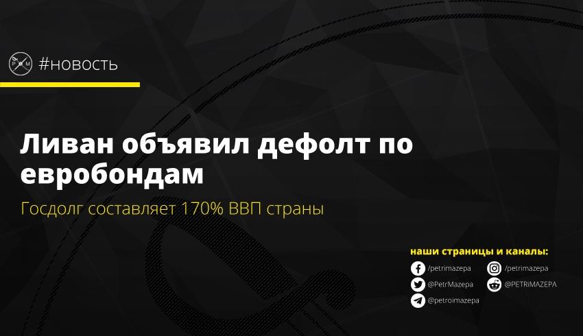 Премьер-министр Ливана Хасан Дияб объявил о неспособности страны выплатить долги по евробондам. Государственный долг Ливана сейчас составляет около 89,5 млрд долларов, из которых около 37% приходится на иностранную валюту. Правительство проголосовало за дефолт и намерено начать переговоры о реструктуризации долга. Это первый дефолт в истории Ливана.