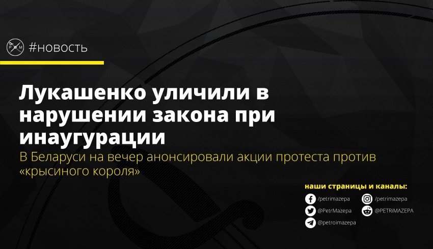 После того, как информация о тайной инаугурации Александра Лукашенко подтвердилась, Telegram-канал Nexta анонсировал на 18:00 среды акции протеста по городам Беларуси. Кроме того, было указано, что Лукашенко нарушил закон, проводя тайную инаугурацию.