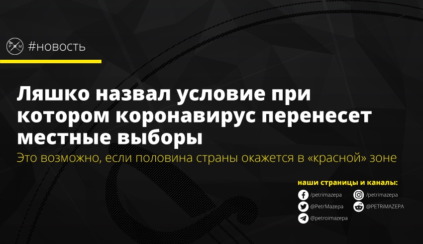 Замминистра здравоохранения, главный санитарный врач Виктор Ляшко заявил, что местные выборы в Украине могут не состояться, если половина территории страны окажется в «красной» зоне карантина из-за распространения коронавируса. В частности, власти могут принять решение о переносе их с октября 2020 года на более поздние сроки.