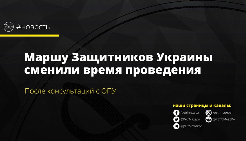 «Сбор остается на 10:00 - нас ждет довольно долгий процесс приветствий, построение, построения колонн и прочее. Это делается не только с целью предотвратить манипуляции, но и по чисто техническим причинам - чтобы участники государственных мероприятий имели возможность присоединиться к Маршу после их завершения, а их организаторы - освободить Крещатик от ограничительных конструкций для прохождения Марша», - сообщают в группе общественной инициативы «Защити Украину».
