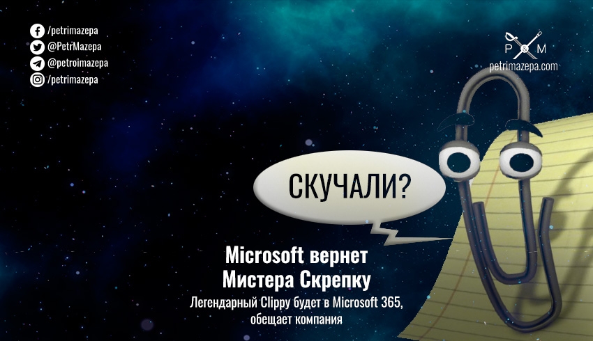 Компания Microsoft пообещала вернуть «помощника» из пакета Office - Clippy, или Мистера Скрепку.