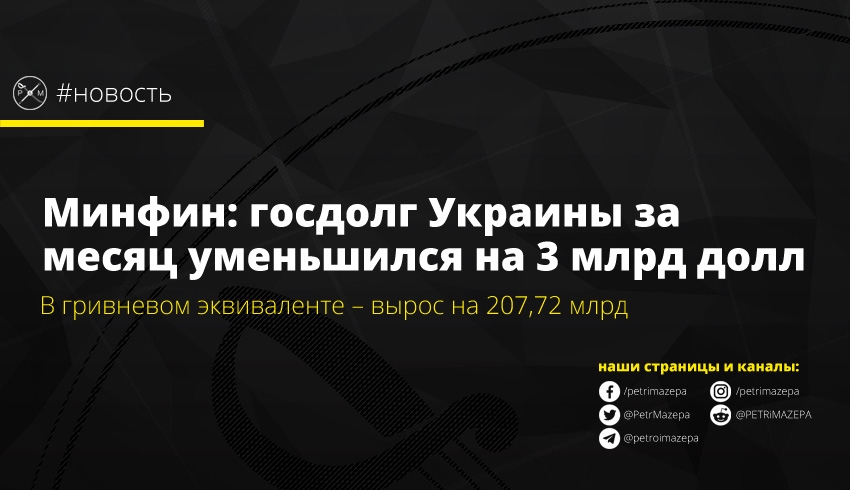 Минфин: госдолг Украины за месяц уменьшился на 3 млрд долл