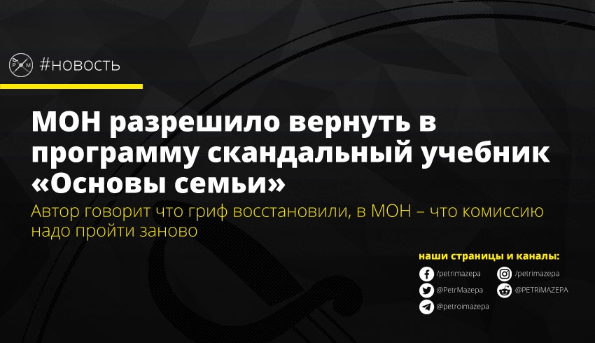 МОН разрешило вернуть в программу скандальный учебник «Основы семьи»