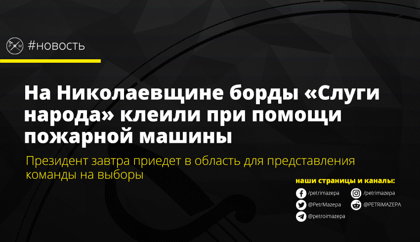На Николаевщине борды «Слуги народа» клеили при помощи пожарной машины