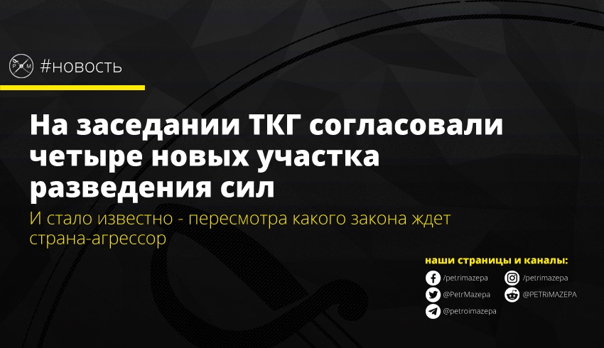 В Офисе президента Украины сообщили, что на заседании ТКГ согласовано 20 участков разминирования и четыре новых участка разведения сил. В вот по обмену от террористов все еще ждут списков. Сами же террористы и страна-агрессор ждут от Леонида Кравчука обращения про отмену одного из пунктов закона о выборах.