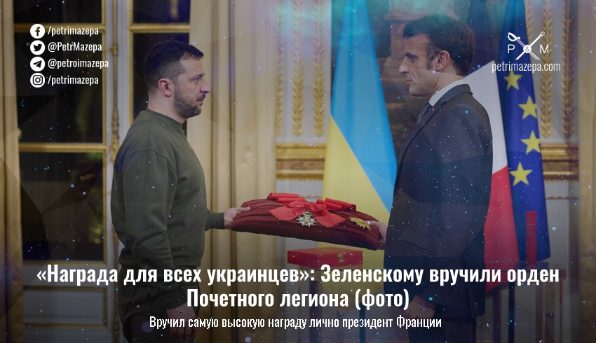 Президент Владимир Зеленский получил от президента Франции высшую награду — орден Почетного легиона. Орден — не только для него, а для всего нашего героического народа, пояснил сам президент.