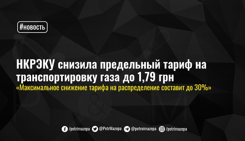 Национальная комиссия, осуществляющая государственное регулирование в сферах энергетики и коммунальных услуг (НКРЭКУ) на своем заседании снизила предельный тариф на распределение газа до 1,79 грн за кубометр.