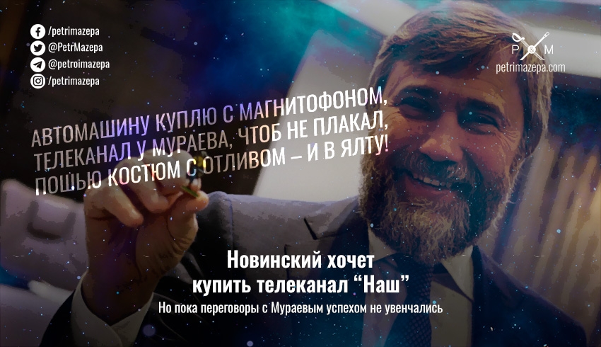 Депутат «Оппозиционного блока», миллиардер Вадим Новинский ведет переговоры о покупке телеканала «Наш» бывшего депутата Евгения Мураева.