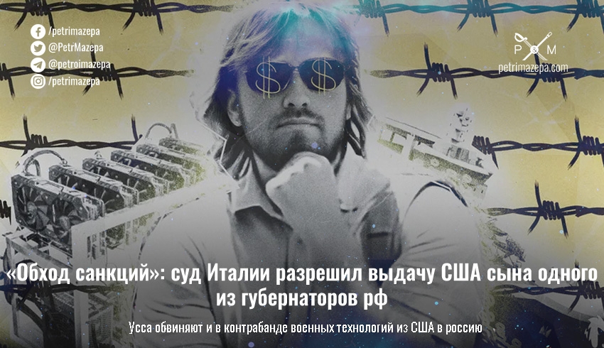 Суд в Италии разрешил экстрадицию в США Артема Усса, россиянина, сына губернатора Красноярского края. Его обвиняют не только в нарушении санкций против Венесуэлы и незаконной торговле нефтью, но и в контрабанде военных технологий из США в рф. Россия тоже просит его экстрадиции.