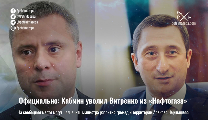 В НАК «Нафтогаз України» подтвердили, что Кабинет министров уже согласовал увольнение Юрия Витренко с должности председателя правления НАК. Он будет занимать этот пост по 3 ноября включительно. За это время, согласно данным СМИ, планируется успеть уволить Алексея Чернышева с должности министра развития громад и территорий, чтобы его можно было назначить главой НАК.