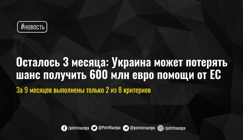 Осталось 3 месяца: Украина может потерять шанс получить 600 млн евро помощи от ЕС