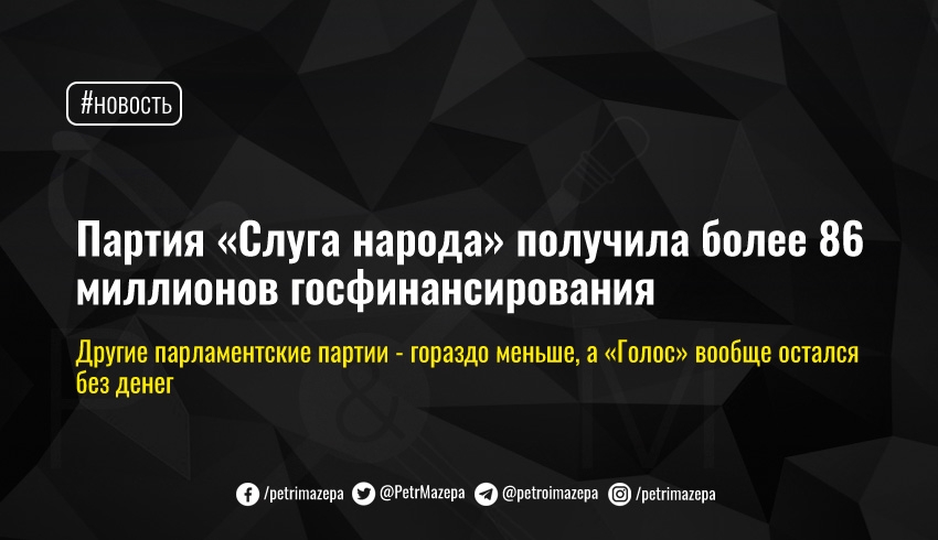 Партия «Слуга народа» получила более 86 миллионов госфинансирования