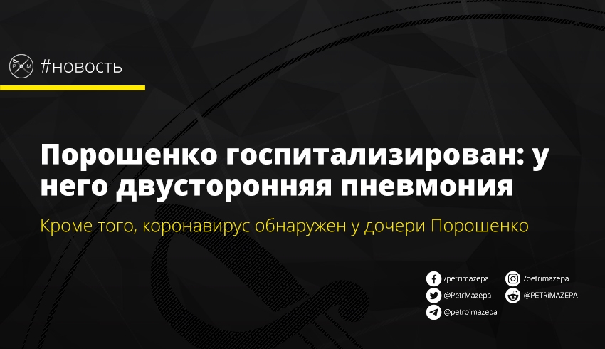 Супруга Порошенко Марина сообщила, что у него двусторонняя пневмония.