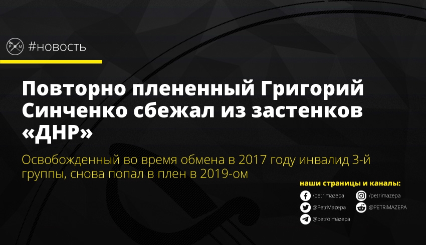 Повторно плененный Григорий Синченко сбежал из застенков «ДНР»
