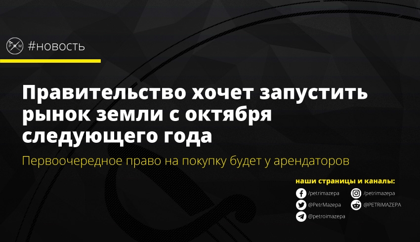 Выступая в Киеве Премьер-министр Алексей Гончарук заявил, что правительство планирует открыть рынок земли с 1 октября 2020 года. Сначала хотели сделать это в июле, но консультанты здраво посоветовали, не совершать резких шагов во время уборочной компании.