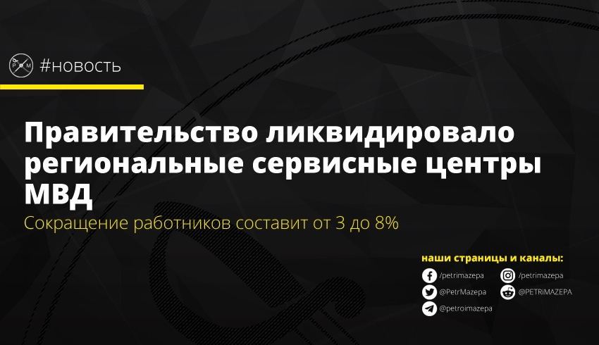 Кабмин принял проект постановления «Некоторые вопросы территориальных органов МВД», который предусматривает сокращение количества территориальных органов МВД путем ликвидации региональных сервисных центров. При этом будут созданы территориальные (обособленные) подразделения Главного сервисного центра (ГСЦ) МВД без статуса юридических лиц