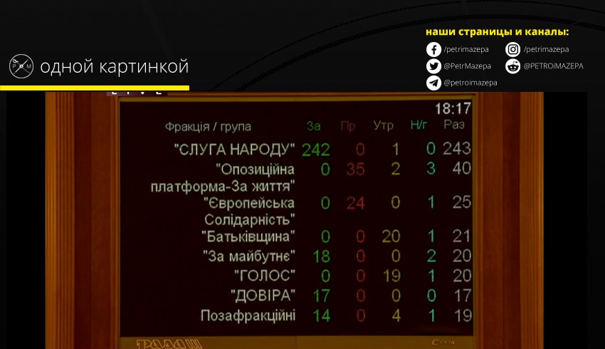 Верховная рада назначила главой Кабинета министров Дениса Шмыгаля по представлению президента. В отличие от голосования за отставку прежнего правительства, назначение нового премьера поддержала в основном «Слуга Народа», а также депутатские группы «Довира» и «За майбутне» и внефракционные депутаты - остальные фракции голосов в поддержку не дали. Против проголосовали только депутаты ОПЗЖ и "ЕС".