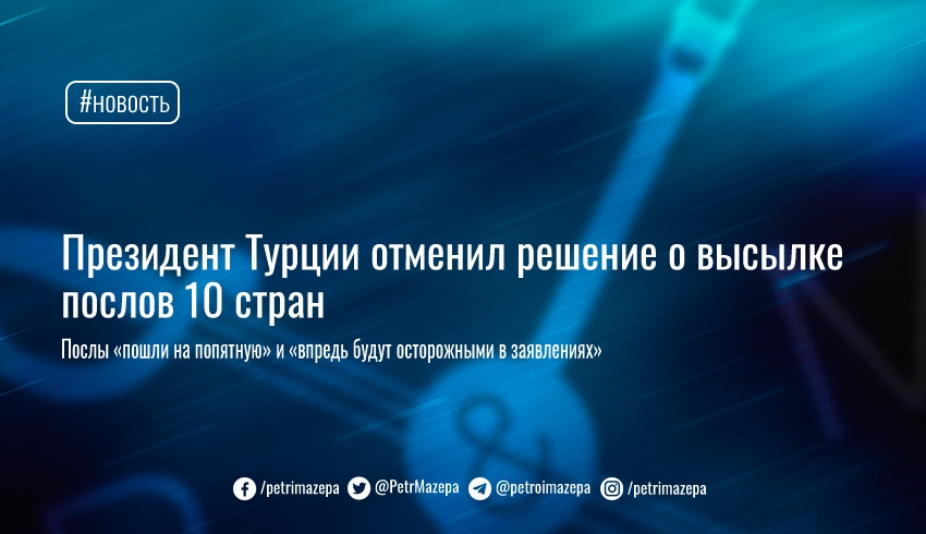 Президент Турции Реджеп Эрдоган дал распоряжение министерству иностранных дел выслать из страны послов десяти западных государств после того, как они выступили с призывом освободить подозреваемого в попытке государственного переворота турецкого правозащитника и филантропа Османа Кавалу. Теперь стало известно, что он отказался от намерения выслать из страны послов десяти западных государств.