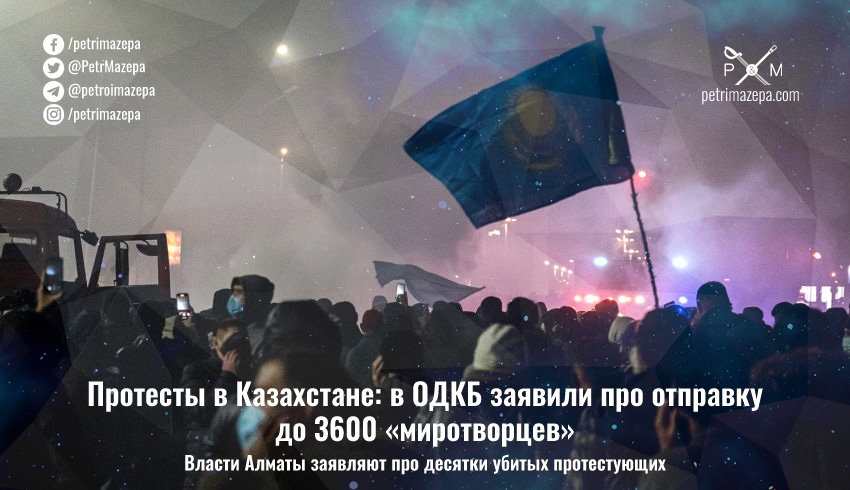 В ночь на 6 января премьер-министр Армении Никол Пашинян, который сейчас является председателем Совета коллективной безопасности ОДКБ, заявил про решение отправить в Казахстан так называемые «миротворческие силы ОДКБ». По данным росСМИ речь идет о контингенте в 3600 человек. Тем временем в крупнейшем городе Казахстана Алматы проходит антитеррористическая операция и власти сообщают про десятки убитых протестующих.
