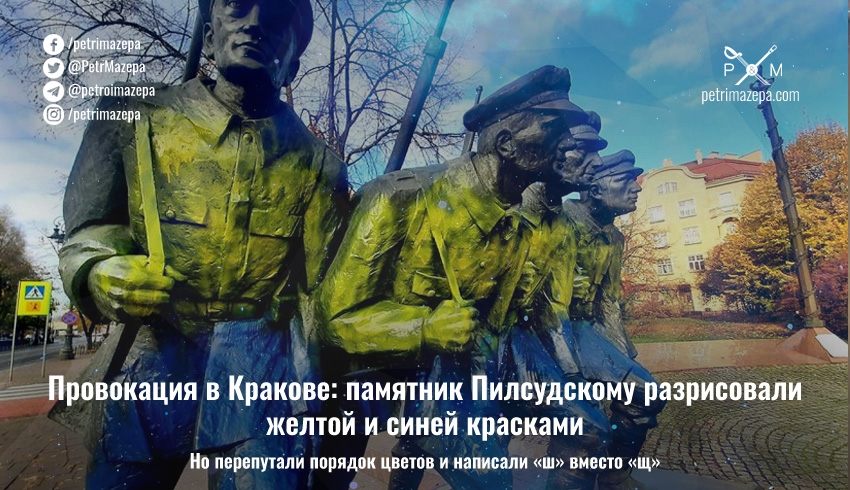 Утром 6 ноября в Кракове обнаружили, что неизвестные разрисовали синей и желтой красками памятник Юзефу Пилсудскому. Также у памятника была обнаружена бумажка с надписью на плохом украинском: «Польша не тільки для панів». Поскольку «Польша» было написано с ошибкой, а цвета флага были перепутаны, в полиции считают, что этот акт вандализма является провокацией.