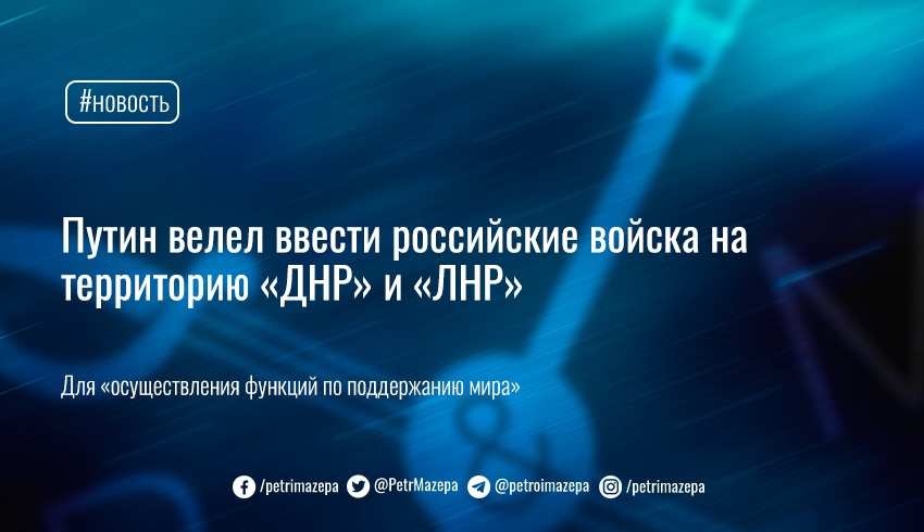 Путин велел ввести российские войска на территорию «ДНР» и «ЛНР»