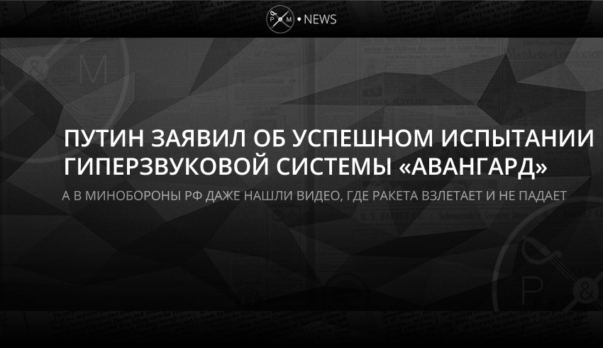 Президент страны-агрессора Владимир ХПутин сегодня подбросил эфемерных дровишек в печь российской пропаганды. По его словам, успешно завершились испытания новой гиперзвуковой системы «Авангард», которая «неуязвима для нынешних и будущих систем ПВО и ПРО».