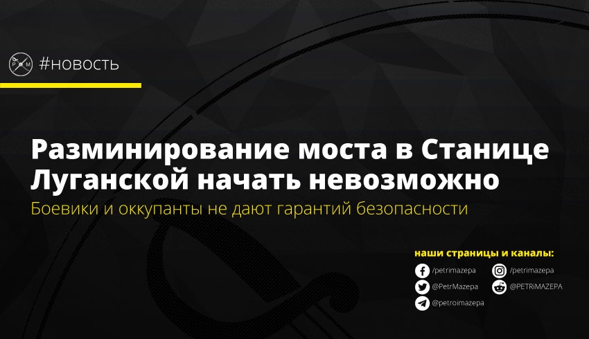 В Станице Луганской специалисты не могут начать разминирование территории около моста, из-за отсутствия со стороны боевиков и оккупантов гарантий их безопасности. Без разминирования территории восстановление моста невозможно.