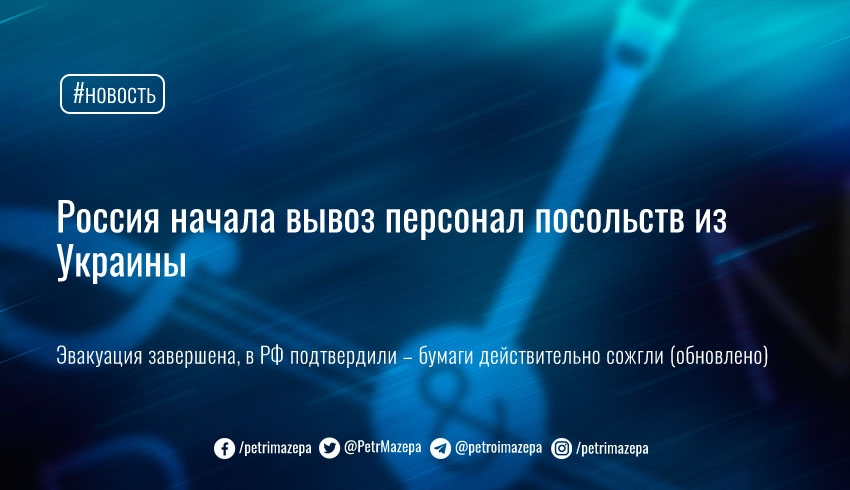 - Вчера, 22 февраля, стало известно, что РФ вывозит персонал посольств из Украины.