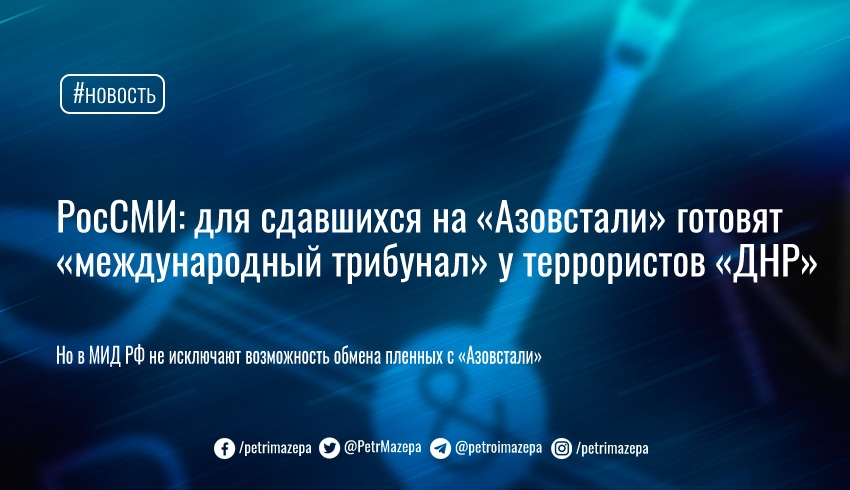Главарь боевиков «ДНР» Денис Пушилин заявил российскому «Интерфаксу», что украинских защитников «Азовстали» и Мариуполя планируют отдать под «международный трибунал». В то же время в МИД РФ не исключают возможность обмена пленных, а пресс-секретарь путина Дмитрий Песков заявил, что «обменный процесс постоянно идет».