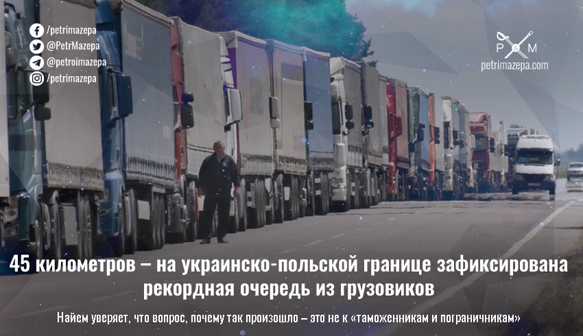 «Главная причина этих очередей всем известна — это низкая эффективность работы польских служб, проводящих фитосанитарный и ветеринарный контроль. Об этом знают не только перевозчики, но и представители тех же контролирующих органов обеих стран. Но почему-то говорят об этом шепотом, чтобы никого не обидеть. Мне кажется, не признавая проблему, мы ее только усугубляем», — пишет Найем.