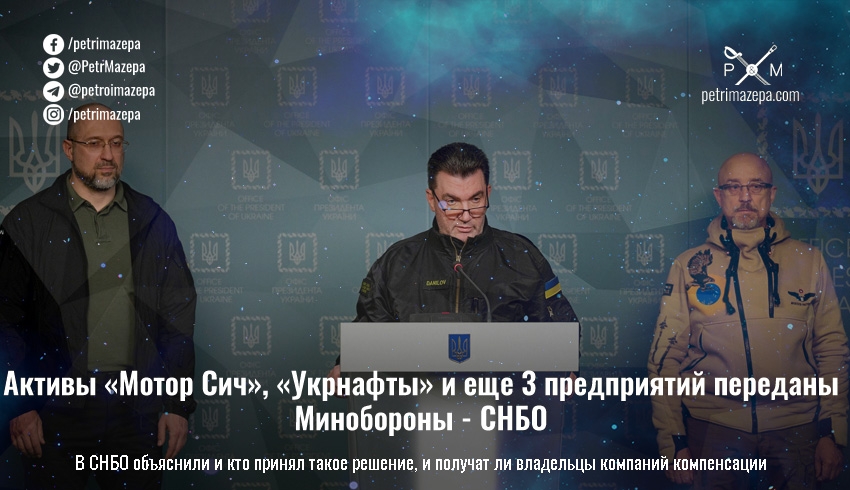 «Изъятые активы приобрели статус военного имущества, управление ими передано Министерству обороны Украины», — цитирует СНБО заявление Алексея Данилова. — «По завершении действия военного положения, согласно требованиям закона, указанные активы могут быть возвращены собственникам, или будет возмещена их стоимость».