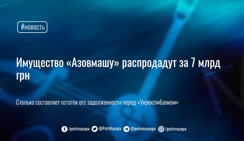 Имущества «Азовмашу» распродадут за 7 миллиардов гривень, сообщает портал 0629, ссылаясь на информацию OpenMarket.
