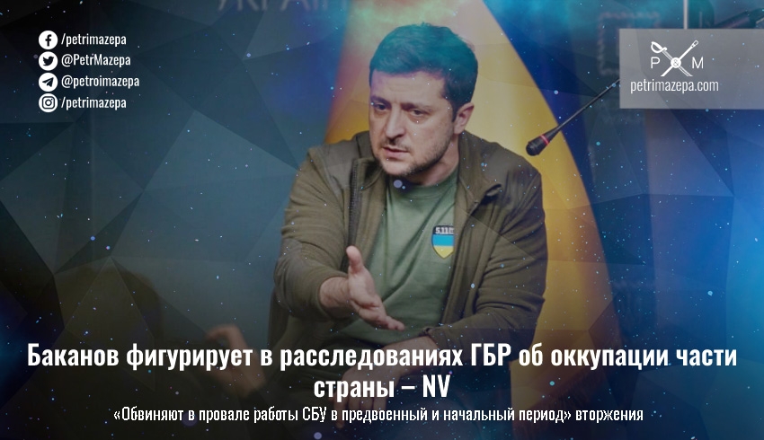 Издание NV со ссылкой на топ-представителя Офиса президента Украины пишет, что экс-глава СБУ Иван Баканов является фигурантом в уголовных производствах ГБР по оккупации части территорий страны.