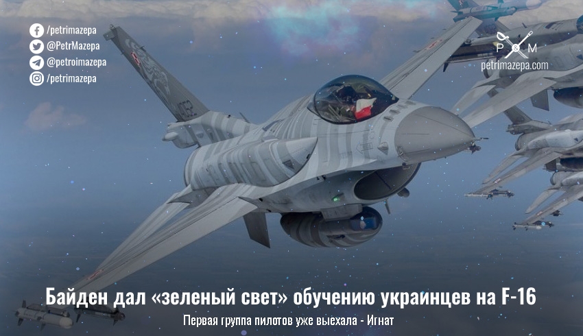 Советник по национальной безопасности Джейк Салливан сообщил, что президент США Джо Байден дал «зеленый свет» на обучение украинских пилотов на F-16, как только европейские центры обучения будут готовы. А представитель Командования Воздушных Сил ВСУ Юрий Игнат сообщил, что первая группа пилотов уже выехала на обучение.