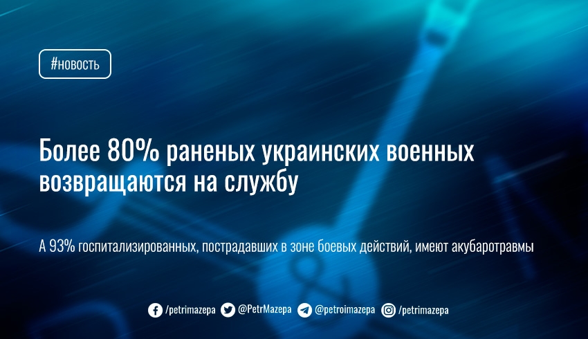 По данным президента Национальной Академии медицинских наук Виталия Цымбалюка, до 82% раненых и больных военных возвращаются в строй.