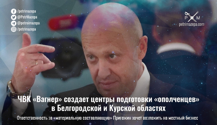 Повар путина и владелец ЧВК «Вагнер» Евгений Пригожин подтвердил, что его военная компания создает центры подготовки так называемых «ополченцев» в Белгородской и Курской областях. С одной стороны, он уверяет, что сам будет финансировать эти центры подготовки, а с другой — хочет возложить ответственность за «материальную составляющую ополчения» на местный бизнес.