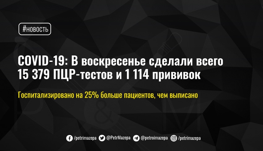 COVID-19: В воскресенье сделали всего 15 379 ПЦР-тестов и 1 114 прививок