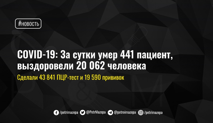 COVID-19: За сутки умер 441 пациент, выздоровели 20 062 человека