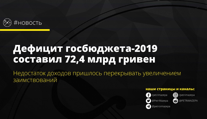 Сегодня Министерство финансов опубликовало оперативные данные по госбюджету-2019. Он был выполнен с дефицитом 72,4 млрд гривен (1,8% от ВВП) при утвержденном в законе уровне 91,1 млрд гривен.