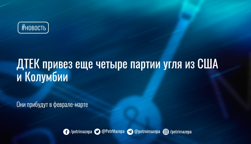 На 24 января ДТЕК поставил в Украину уже девять партий с углем из Колумбии и США. Это позволило увеличить запасы угля на ТЭС компании до 548 тыс. тонн.