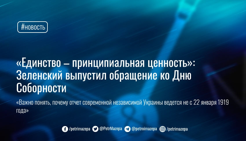Президент Владимир Зеленский выпустил поздравление с Днем Соборности Украины – он отметил, что важно извлечь правильные уроки из истории, сохранить единство украинского народа, чтобы отчет современной независимой Украины больше никогда не прерывался.