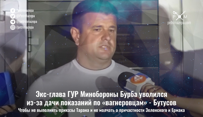 Экс-начальник Главного управления разведки Министерства обороны Украины, генерал-полковник Василий Бурба сегодня был уволен с воинской службы из-за дачи показаний по делу «вагнеровцев». Рапорт он подал еще 14 сентября, после того как от министра обороны Андрея Тарана прозвучал приказ не давать показаний ВСК, и скрыть причастность Зеленского и Ермака к отмене спецоперации.