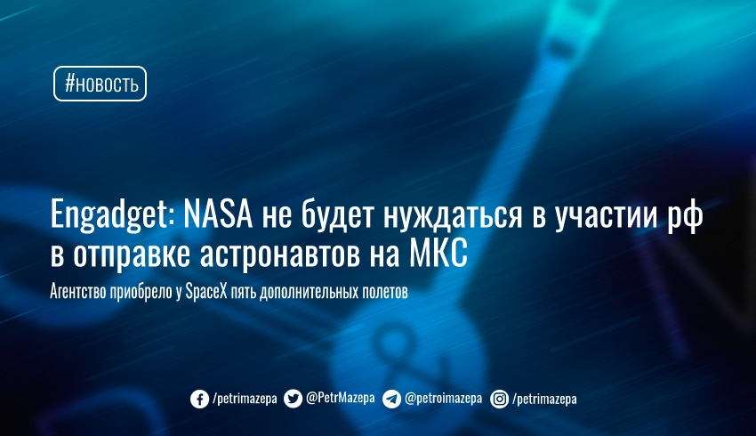 NASA организовало достаточное количество полетов SpaceX на МКС, чтобы не нуждаться в услугах россии в отправке астронавтов на орбитальную станцию. Этих рейсов хватит, чтобы менять экипажи МКС до 2030 года.