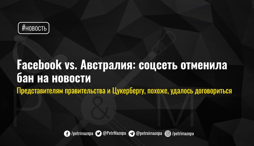 Facebook vs. Австралия: соцсеть отменила бан на новости