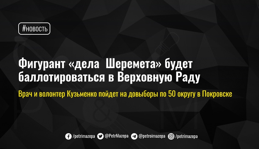 Врач Юлия Кузьменко, фигурант дела в убийстве журналиста Павла Шеремета, будет баллотироваться на довыборах в Верховную Раду на 50 округе в Покровске.