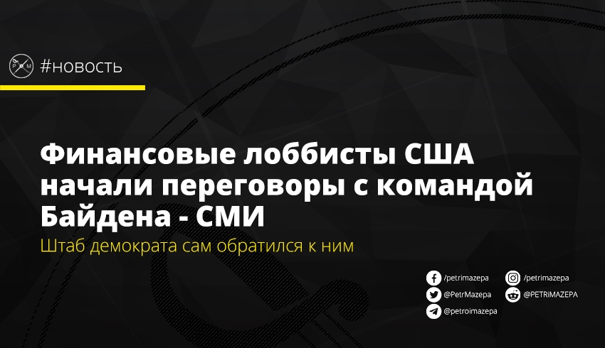 Финансовые лоббисты США начали переговоры с переходной командой Джо Байдена, который, вероятно, выиграл выборы президента.